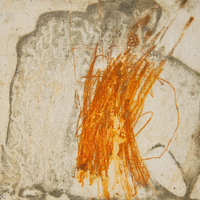 aus gleichnamiger 28-teiliger Reihe, Pigmente, Gesteinsmehle, Grafit, Baumwolle, Kunststoff, Zwirn und Wachsguss auf MDF Block, 15 cm x 15 cm x 4,5 cm