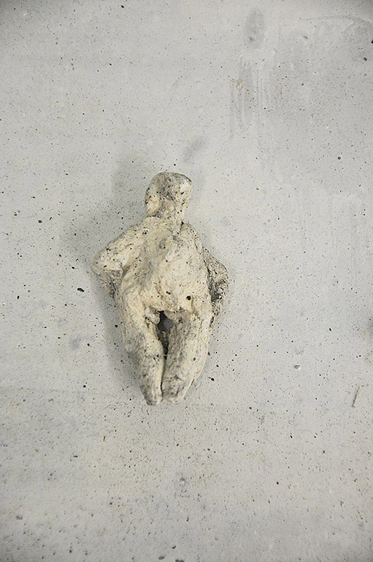 Figur aus Papier, - Holz, - Basalt, - Granit, - Talkummehle und Wachs, ca. 8 cm