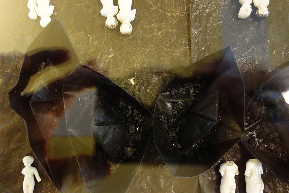 Detailansicht aus gleichnamiger Installation, Ausstellungsansicht Blick durch Vitrine, Kulturzentrum Rathenow, 2017