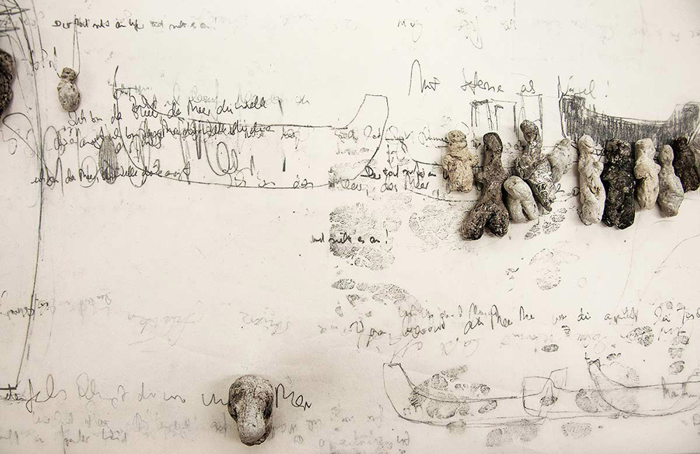 Figur aus Holz, - Papier, - Granit, - Talkum, - und Tonmehl, gewachst, Bristolkarton bedruckt
