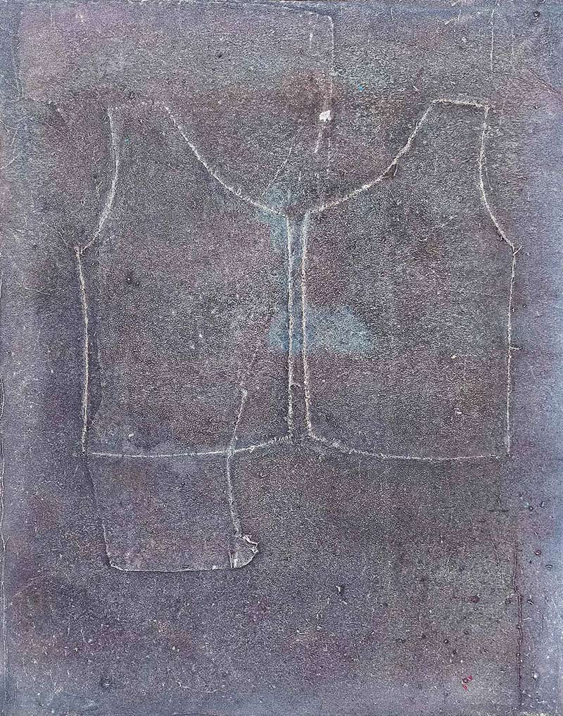 Pigmente, Granit - und Schiefermehl, Awagami-Papier, Salz und Acryl auf Leinwand, 50 cm x 40 cm