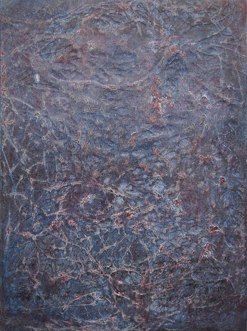 Pigmente, Granit - und Schiefermehl, Flachs, Awagami-Papier, Wachs und Acryl auf Leinwand, 40 cm x 30 cm