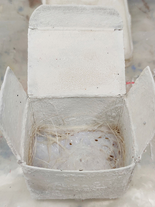 2022, Kristallisation von Meersalz mit Mineralien in Papierboxen a 13 cm x 9 cm x 6 cm