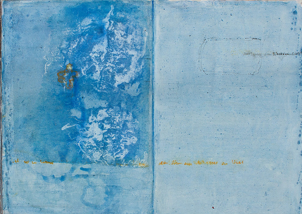 aus Buchobjekt VOM WASSER HER – LOGBUCH – zu Paul Celan