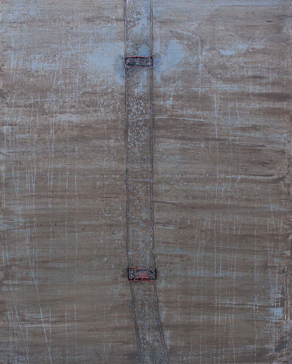 Collage aus Zeichnungen, Malerei, Landkartenfragmenten, Gesteinsmehlen und Wachs auf Papier, je je 35 cm x 26 cm